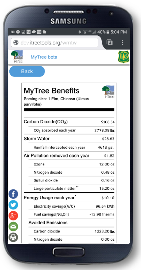 Reduction of air pollution has proven benefits to human health – trees truly can enhance our lives! MyTree allows students to explore the individual benefits provided by the trees near their school or home. Have your students visit trees on your school campus, and let them tell us a little bit about one, or more trees growing there, and we’ll estimate the amount of carbon dioxide and pollution it removes from the air, as well as the amount of stormwater it can help mitigate.
